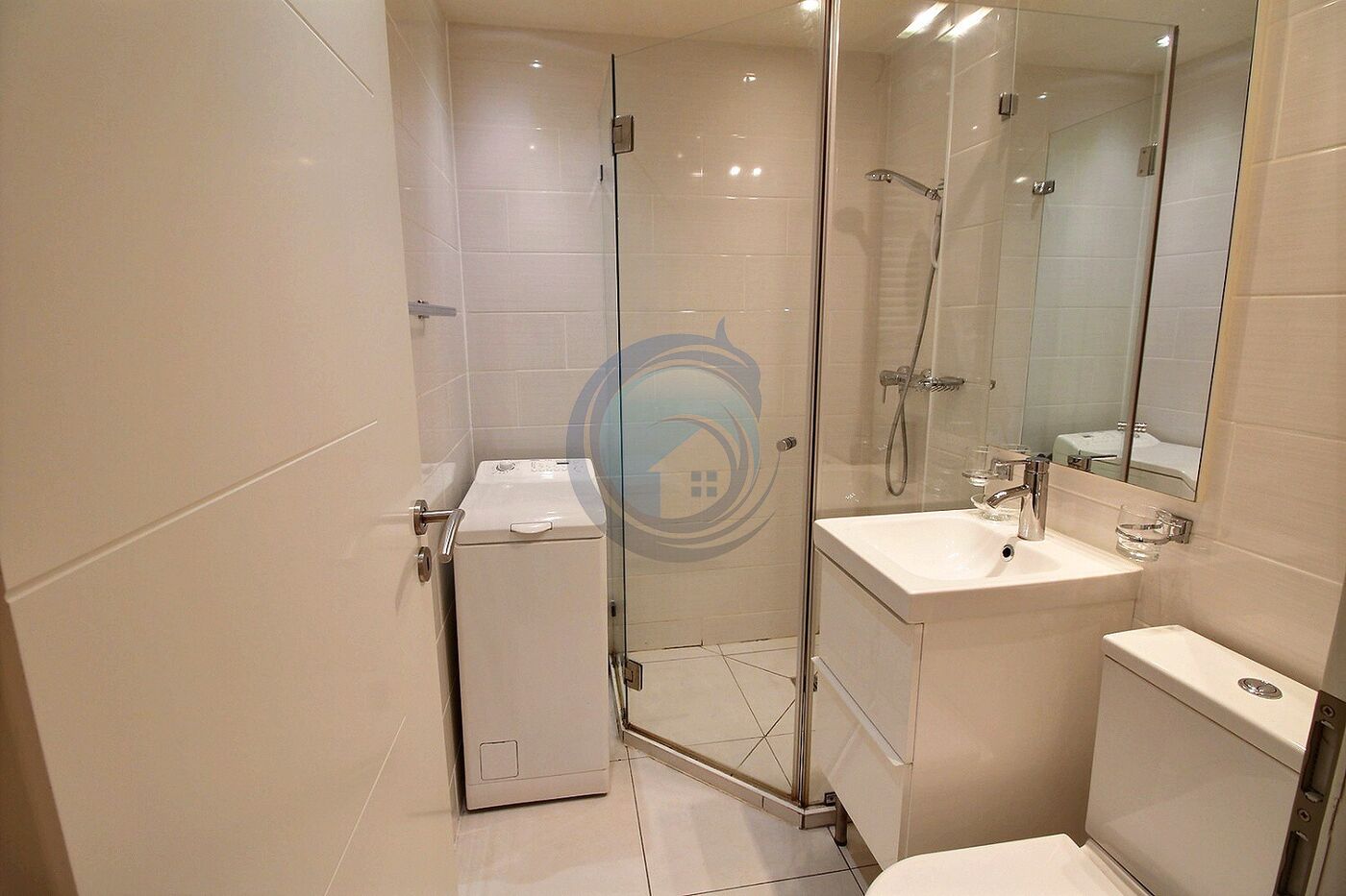 - Salle de douche/WC avec raccordement pour colonne de lavage.