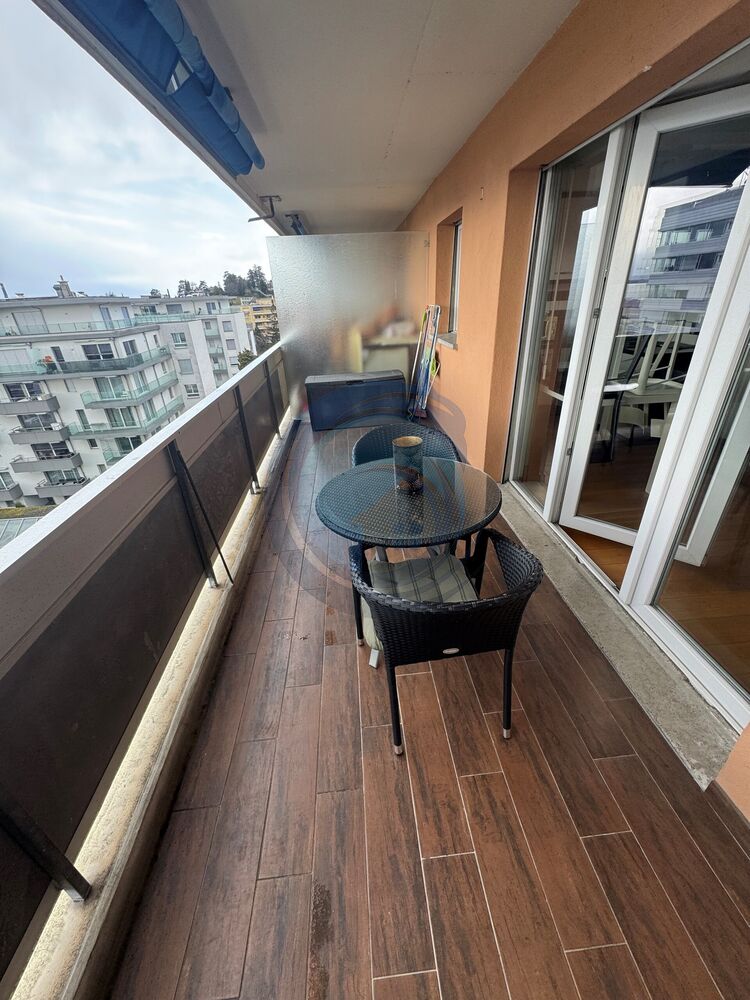- Belle pièce de vie lumineuse avec accès direct au grand balcon profitant d'une magnifique vue sur le lac, les Dents-du-Midi et les Alpes.
