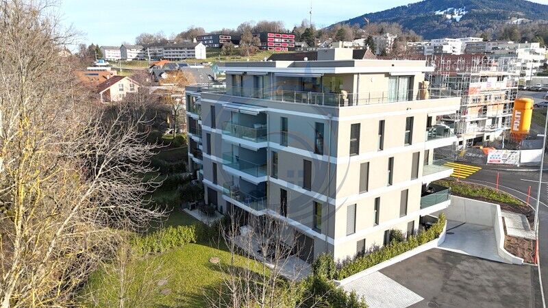 Terrasse généreuse, luminosité remarquable et emplacement privilégié : ce bel appartement de 2,5 pièces en rez-de-chaussée réunit des atouts rares au sein d’un immeuble moderne construit en 2023.