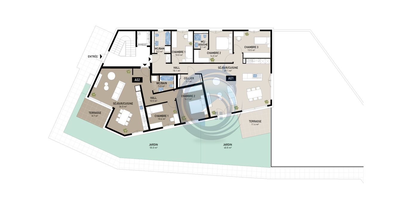 Terrasse et jardin privatif 63 m² : Profitez pleinement de la vie en plein air et des moments de détente.