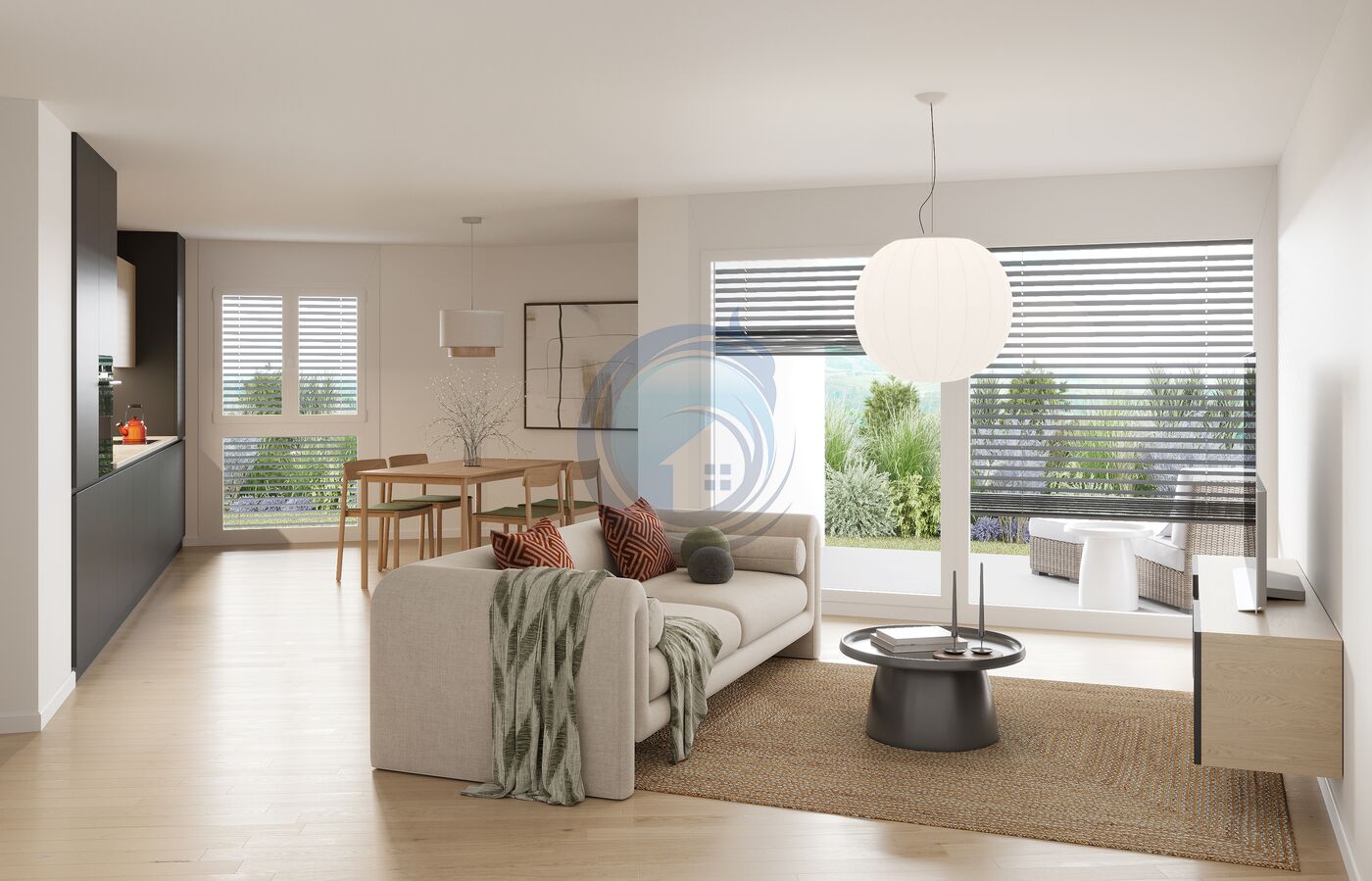 Espace de vie lumineux : Salon et salle à manger ouverts sur la terrasse, offrant un continuum parfait entre intérieur et extérieur.