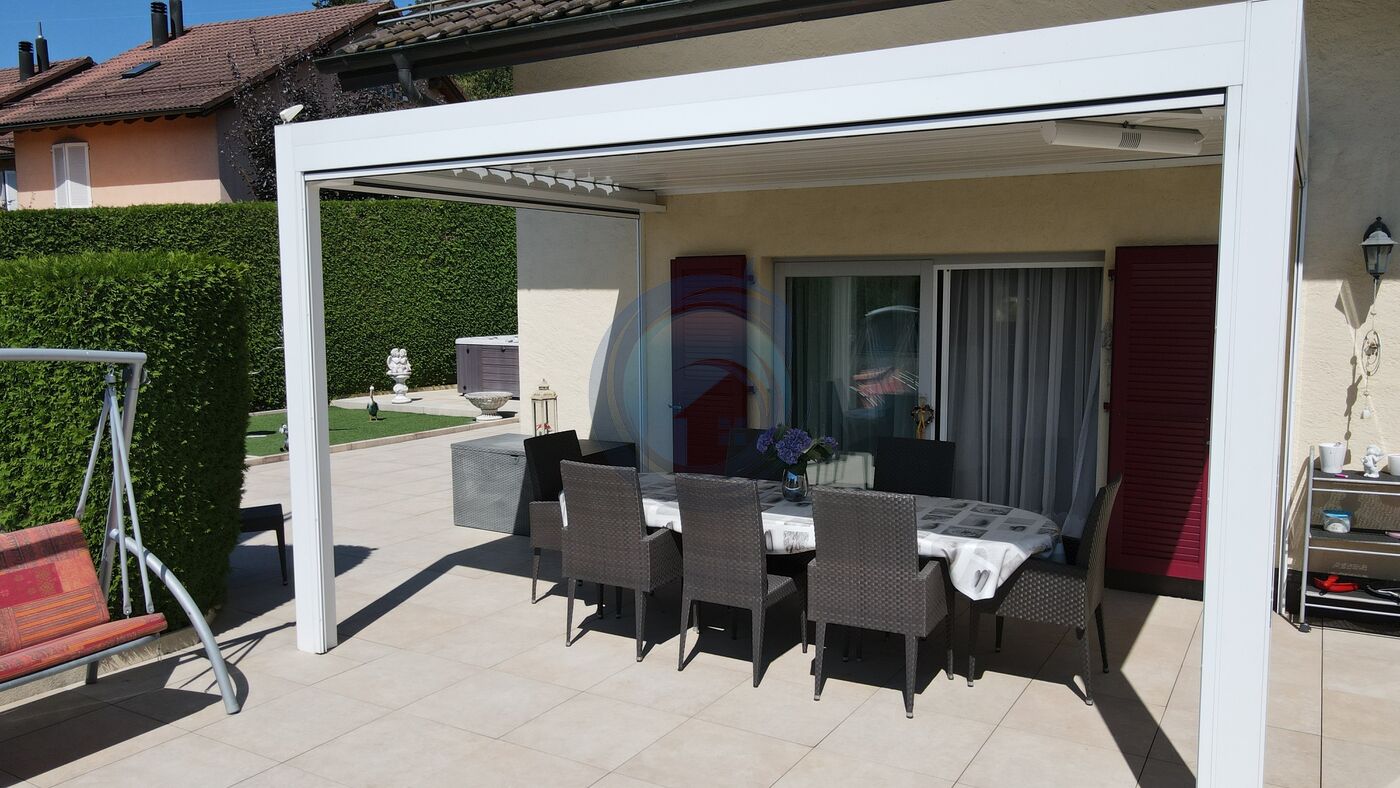 Les aménagements extérieurs ont été pensés pour allier esthétisme et facilité d’entretien. Une pergola, installée en 2018, permet de prolonger agréablement les moments en extérieur en famille ou entre amis.