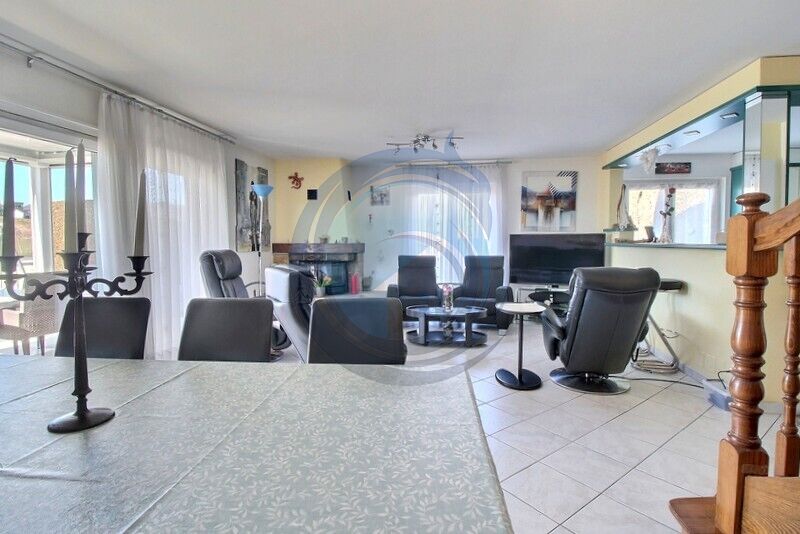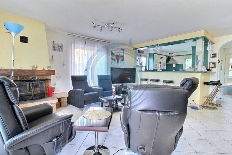 La maison propose des espaces de vie parfaitement agencés et baignés de lumière. Le séjour, spacieux et convivial, s’ouvre sur une cuisine ouverte, créant un lieu de vie chaleureux et adapté au quotidien comme aux moments de partage. Celui-ci se prolonge naturellement sur une vaste terrasse, idéale pour profiter des beaux jours.